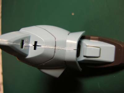 一応、DESTINY 水色で修正しましたが、全く改善されませんでした。同じく頑張っても密着しなかった胴体。 ここは隠れるので、無駄なあがきはやめました。