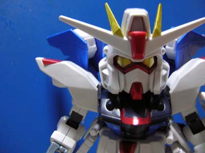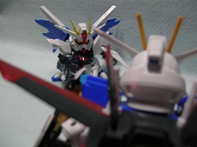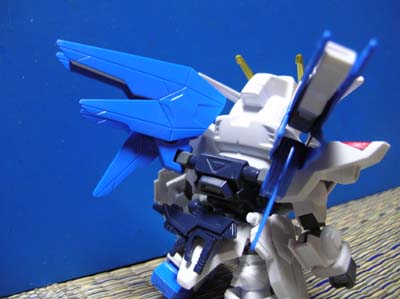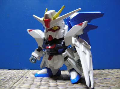 SDガンダム FREEDAM SDシリーズはずいぶん前に作りました。 多分、2006年10月くらいじゃないかと。 この子も色指定は結構いい加減でした。 「ジャスティスしかいないんだったら、ストライクフリーダムじゃなくてフリーダムだろう」というこだわりで造った子です。 真正面顔。 寸詰まりの癖に、シリアスっぽいです。 背中アングル。 でも、この子は羽根が綺麗ですよね。 インパルスとの対峙です。