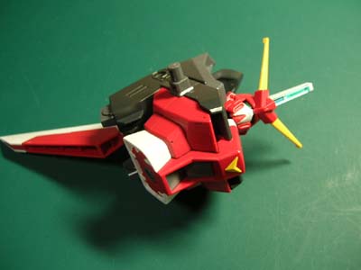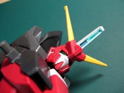 ついでに耳の両脇の機関砲はピンバイスで少し穴を開けています。製作2日目。 実は足と腰までしか出来ませんでした。